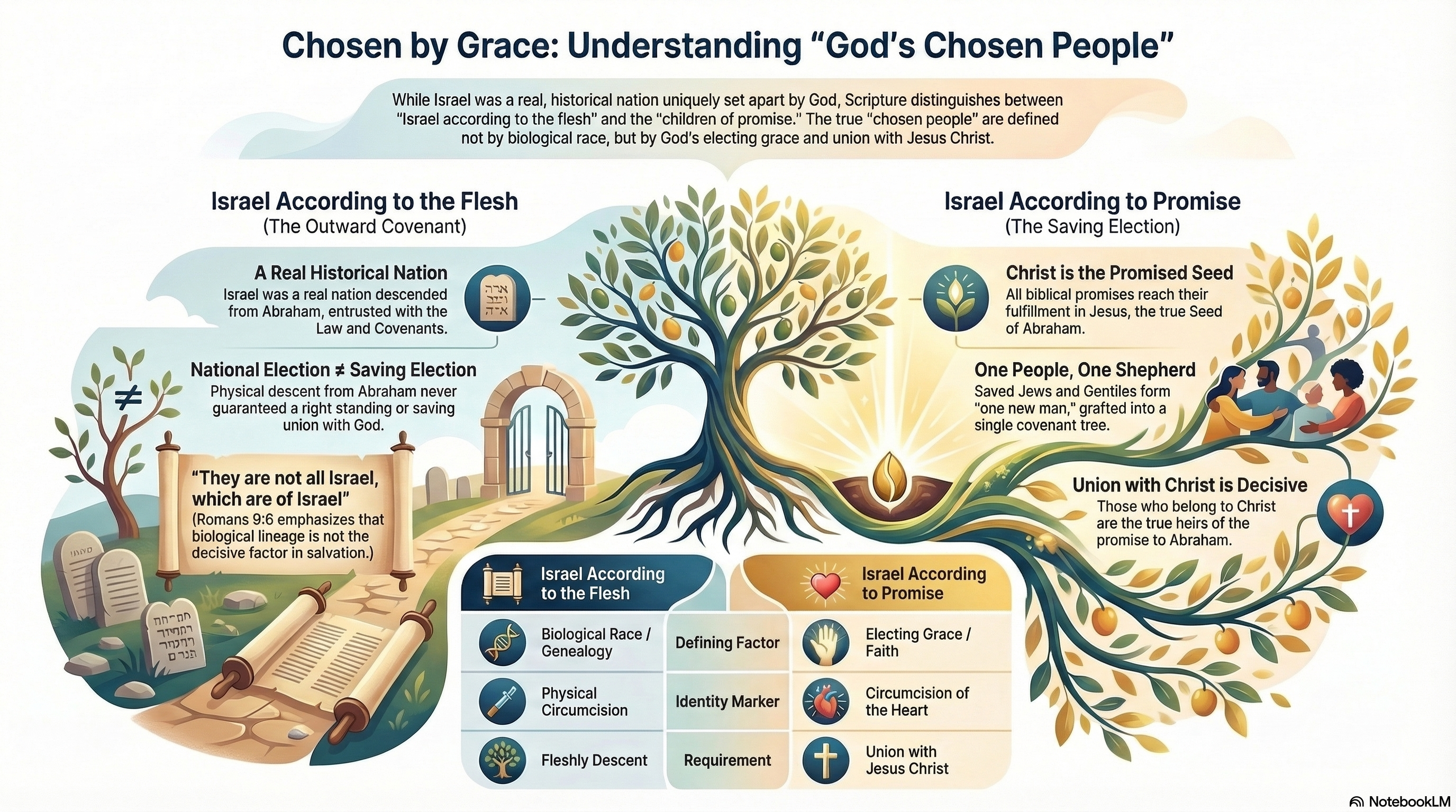 The phrase “God’s chosen people” is often used carelessly. In popular speech it is treated as though it simply means a biological race, a bloodline, or a permanent ethnic category carrying saving privilege in itself. Scripture does not speak that way. The Bible absolutely teaches that Israel was a real historical nation, specially set apart by God in the progress of redemption. But Scripture just as clearly teaches that the saving people of God are not defined by fleshly descent. They are defined by God’s electing grace in Christ.